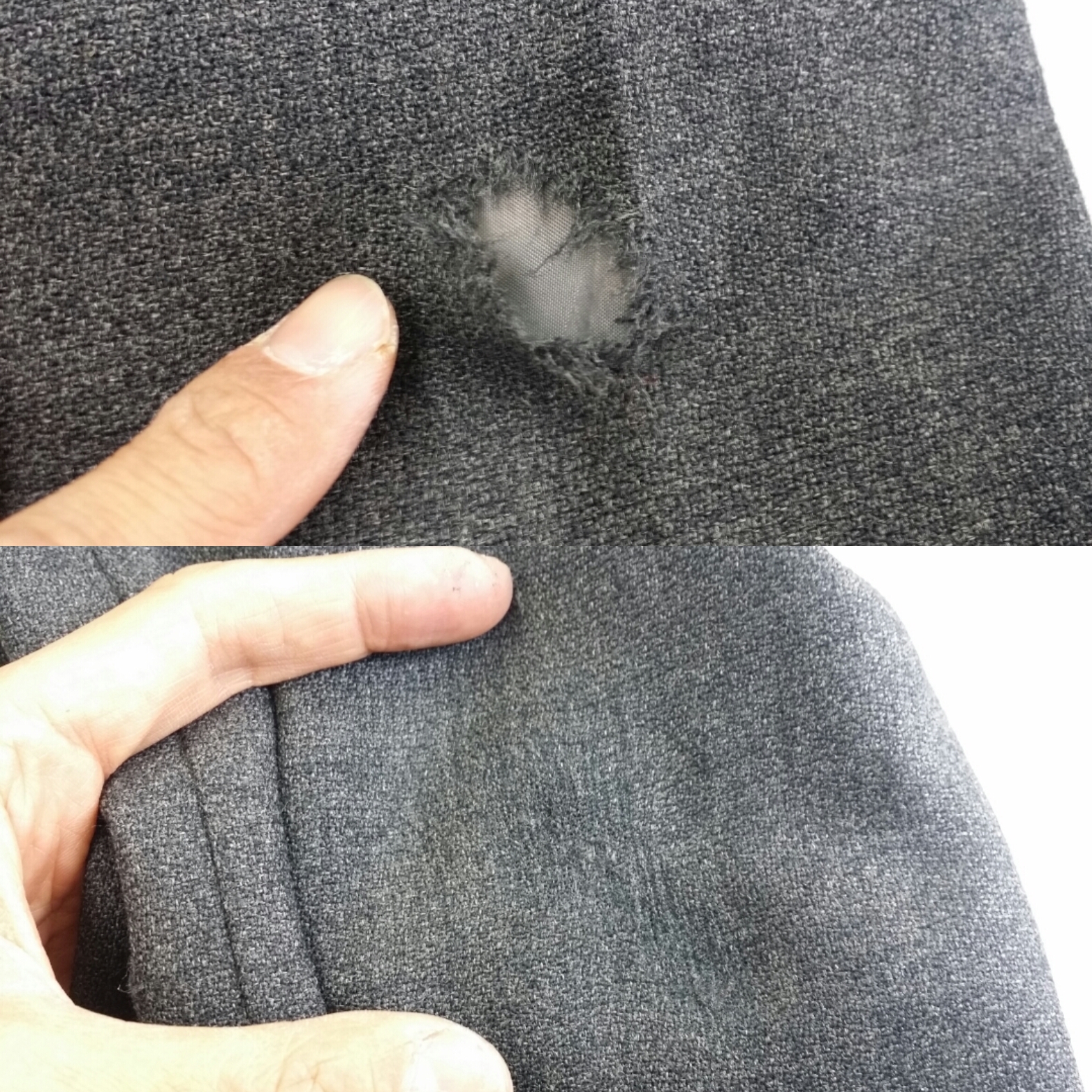 その他の人達にもせっかく気に入って買われたもの、愛着心があるものはそんなに簡単にあきらめ、捨てないで直してまた着て下さい!